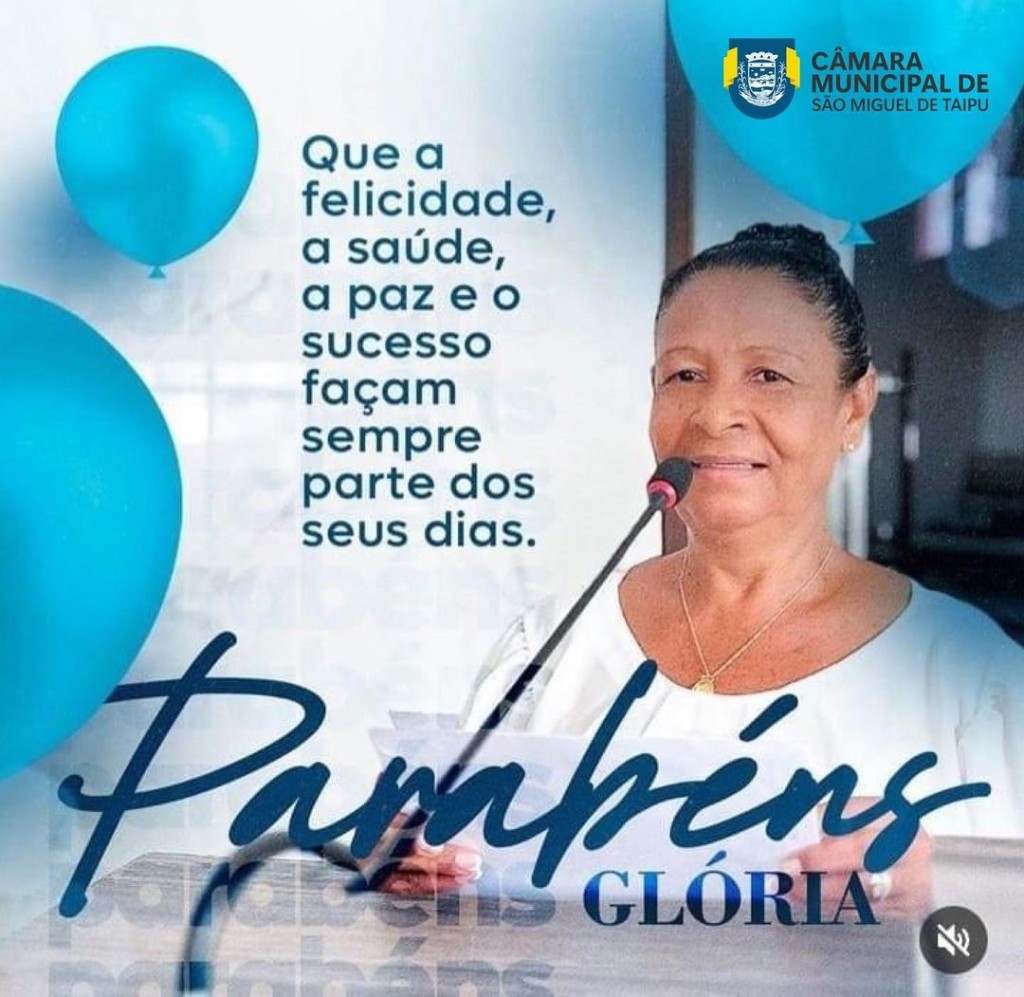 A Câmara Municipal de São Miguel De Taipu parabeniza a @vereadoragloria pelo seu aniversário. Desejamos que sua vida seja repleta de emoções, alegrias, saúde e conquistas. Que o Divino Pai Eterno possa continuar iluminando sua vida, mostrando os melhores caminhos e realizando todos os seus sonhos. Feliz Aniversário. Esses são os votos dos vereadores e colaboradores da Câmara Municipal de São Miguel De Taipu.